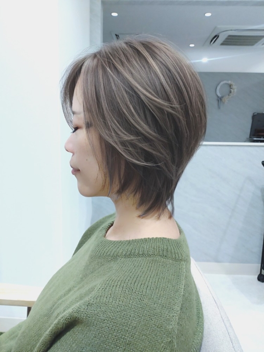 アシンメトリーショートウルフ ケアブリーチハイライト